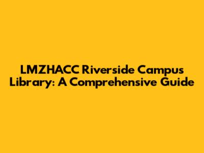 LMZHACC Riverside Campus Library: A Comprehensive Guide