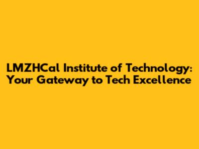 LMZHCal Institute Of Technology: Your Gateway To Tech Excellence
