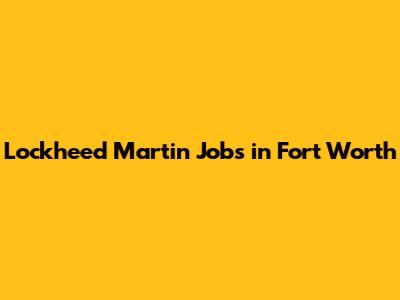 Lockheed Martin Jobs In Fort Worth