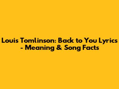 Louis Tomlinson: Back To You Lyrics - Meaning & Song Facts
