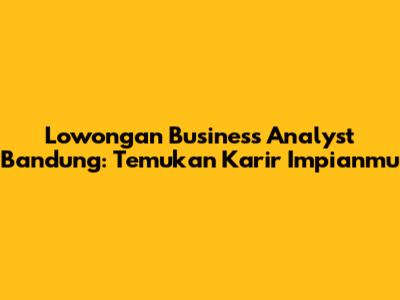 Lowongan Business Analyst Bandung: Temukan Karir Impianmu