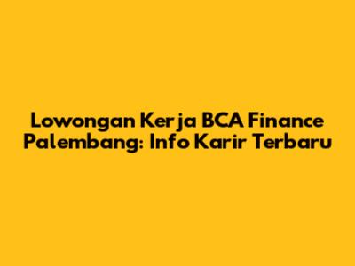 Lowongan Kerja BCA Finance Palembang: Info Karir Terbaru
