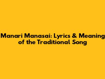 Manari Manasai: Lyrics & Meaning Of The Traditional Song