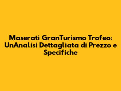 Maserati GranTurismo Trofeo prezzo – Siete pronti a immergervi nel mondo affascinante della Maserati GranTurismo Trofeo? Questo articolo è la vostra guida completa per esplorare ogni aspetto di questa straordinaria vettura, dal suo prezzo alle sue prestazioni mozzafiato. Se siete appassionati di automobili di lusso e desiderate comprendere appieno cosa rende la GranTurismo Trofeo un'icona, siete nel posto giusto. Preparatevi a scoprire i dettagli che la rendono un'auto unica nel suo genere, un mix perfetto di eleganza, potenza e tecnologia all'avanguardia.