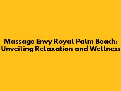 Hey there, wellness enthusiasts! Today, we're diving deep into the world of Massage Envy in Royal Palm Beach. If you're searching for a place to unwind, de-stress, and rejuvenate, you've landed in the right spot. We'll explore the various massage and facial services, the benefits they offer, and what makes this particular location a haven for relaxation. Let's get started!
