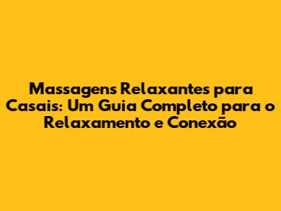 Massagens Relaxantes Para Casais: Guia Completo