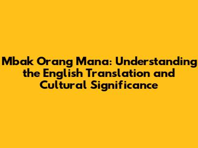 Mbak Orang Mana: English Translation & Cultural Meaning