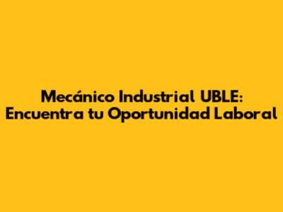 Mecánico Industrial UBLE: Tu Guía Completa De Empleo