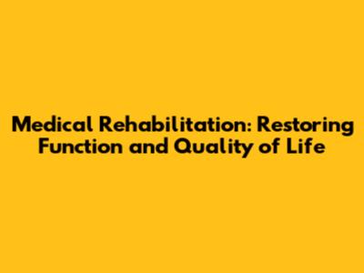 Medical Rehabilitation: Restoring Function And Quality Of Life