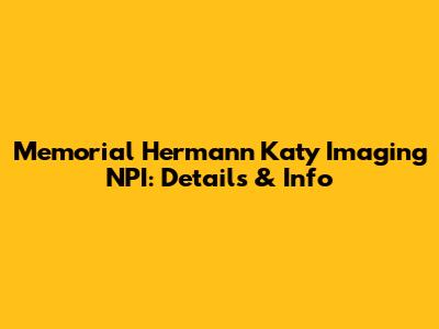 Memorial Hermann Katy Imaging NPI: Details & Info