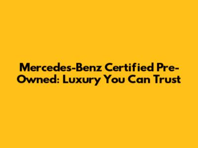 Mercedes-Benz Certified Pre-Owned: Luxury You Can Trust