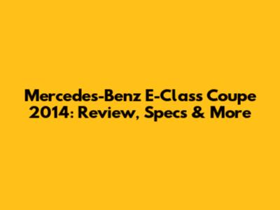 Mercedes-Benz E-Class Coupe 2014: Review, Specs & More