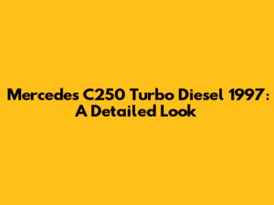 Hey car enthusiasts! Today, we're diving deep into a classic: the Mercedes C250 Turbo Diesel from 1997. This car isn't just a mode of transportation; it's a piece of automotive history. If you're thinking about buying one, already own one, or are simply curious, this in-depth review is for you. We'll cover everything from its engine and performance to its interior and overall reliability. Let's get started!