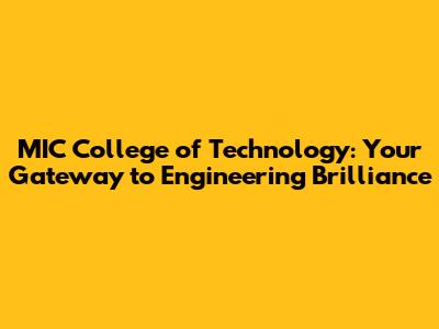 MIC College Of Technology: Your Guide To Engineering Excellence