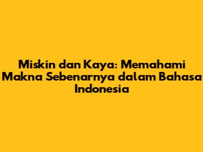 Memahami konsep miskin dan kaya dalam bahasa Indonesia melibatkan pemahaman yang mendalam tentang faktor-faktor penyebab dan dampak kemiskinan, serta upaya-upaya yang dapat dilakukan untuk menanggulangi kemiskinan. Penanggulangan kemiskinan membutuhkan kerjasama dari semua pihak, termasuk pemerintah, masyarakat, dan sektor swasta. Dengan kerjasama yang baik, kita dapat menciptakan masyarakat yang lebih adil dan sejahtera bagi semua.