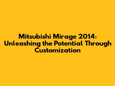 Mitsubishi Mirage 2014: Customization & Performance Upgrades