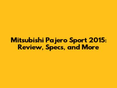 Mitsubishi Pajero Sport 2015: Review, Specs, And More