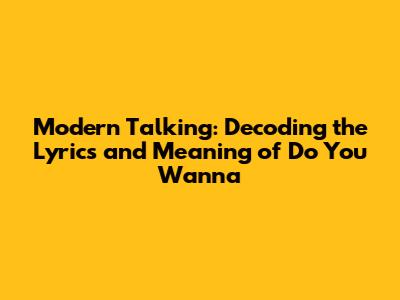 Modern Talking: Do You Wanna Lyrics & Meaning