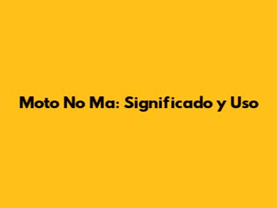Moto No Ma: Significado Y Uso
