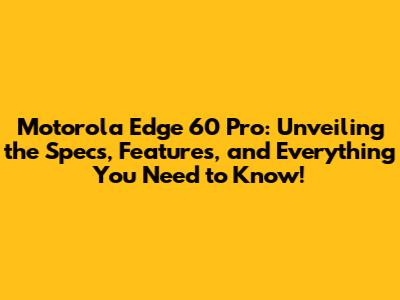 Motorola Edge 60 Pro: Specs, Features & More!