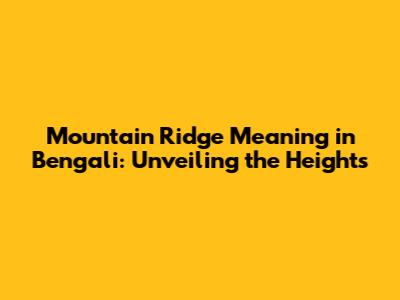 Mountain Ridge Meaning In Bengali: A Comprehensive Guide
