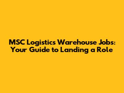 MSC Logistics Warehouse Jobs: Your Guide To Landing A Role