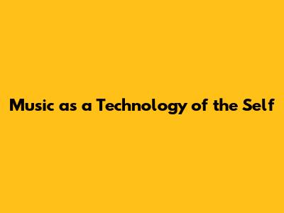 Music As Self-Technology: Enhancing Well-being