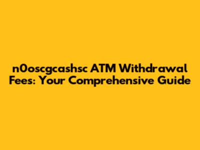 N0oscgcashsc ATM Withdrawal Fees: What You Need To Know
