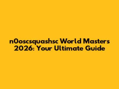 N0oscsquashsc World Masters 2026: Everything You Need To Know