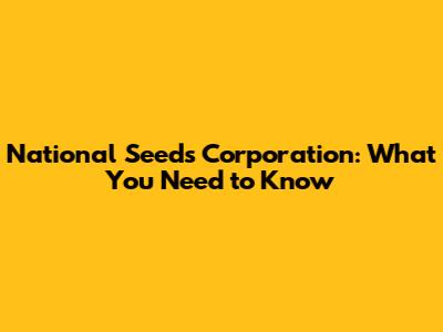 National Seeds Corporation: What You Need To Know