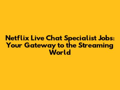 Netflix Live Chat Specialist: Your Dream Job Awaits!