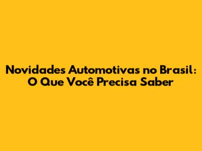 Novidades Automotivas No Brasil: O Que Você Precisa Saber