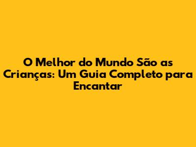 O Melhor Do Mundo São As Crianças: Guia Completo