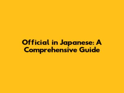 Official In Japanese: A Comprehensive Guide