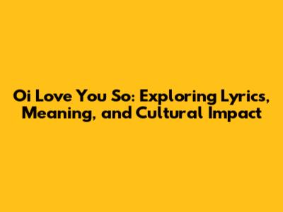 Oi Love You So: Lyrics, Meaning, And Cultural Impact