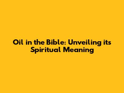 Oil In The Bible: Unveiling Its Spiritual Meaning