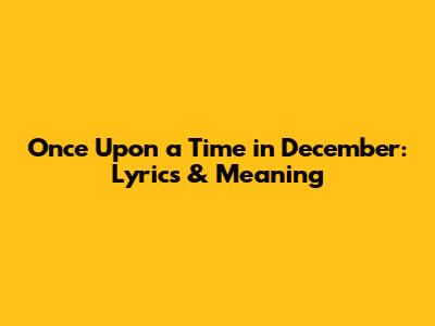 Once Upon A Time In December: Lyrics & Meaning