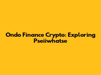 Ondo Finance Crypto: Exploring Pseiiwhatse