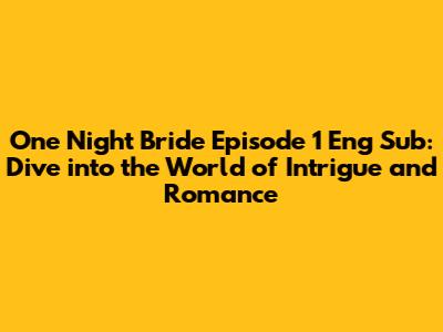 Hey guys! Ever stumbled upon a drama that just hooks you from the very first episode? Well, let me tell you about "One Night Bride." Specifically, we're diving deep into episode 1 with those all-important English subtitles. This drama blends historical elements with a captivating romance, making it a must-watch for anyone who loves a good story. In this article, we will explore the captivating world of "One Night Bride", focusing on what makes the first episode so special and why you should definitely add it to your watchlist. This drama is more than just a visually appealing series; it’s a narrative-rich experience that delves into themes of love, loyalty, and identity. Trust me, the intricate plot and well-developed characters will keep you glued to the screen, eagerly anticipating what comes next. From the stunning costumes and set designs to the compelling performances by the cast, "One Night Bride" offers a feast for the senses and a captivating story that resonates on a deeper level.