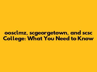 Oosclmz, Scgeorgetown, And Scsc College: What You Need To Know