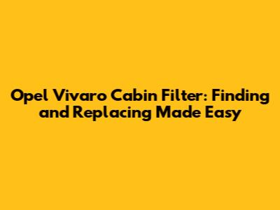 Opel Vivaro Cabin Filter: Find & Replace Easily