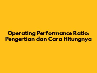 Apa Itu Operating Performance Ratio?