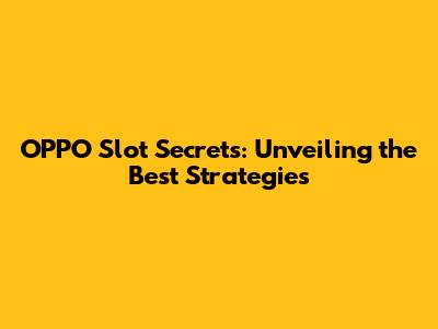 OPPO Slot Secrets: Unveiling The Best Strategies
