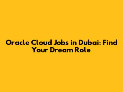 Oracle Cloud Jobs In Dubai: Find Your Dream Role