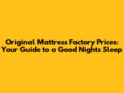 Original Mattress Factory Prices: What You Need To Know