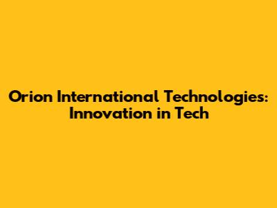 Orion International Technologies: Innovation In Tech