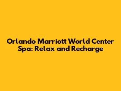 Orlando Marriott World Center Spa: Relax And Recharge