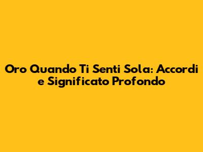 Oro Quando Ti Senti Sola: Accordi E Significato Profondo