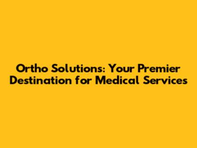 Ortho Solutions: Your Guide To Medical Services