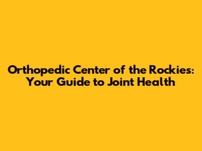 Orthopedic Center Of The Rockies: Your Guide To Joint Health
